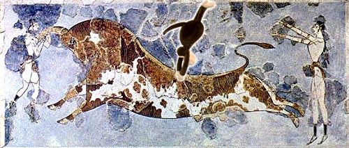 Friday, 16th Monkey on Ice (plant), Carpobrotus chilensis. Chillin' along the freeway. No kidding, this is an elevated freeway embankment in Opice's town. The sunken freeways are also landscaped, but Monkey was talked out of trying to shoot a foto down, along one of them. Some people on the Central Coast consider ice plant a transplanted weed, perhaps from South Africa. Some people in the Central Valley consider Monkey a transplanted cretin--no ifs ands or buts. They are wrong (the 2nd. they). Monkey once visited Knossos--but he's not from there. And he's never jumped a bull despite what he'll tell you about that trip if given too much ouzo.  Note about link to Knossos