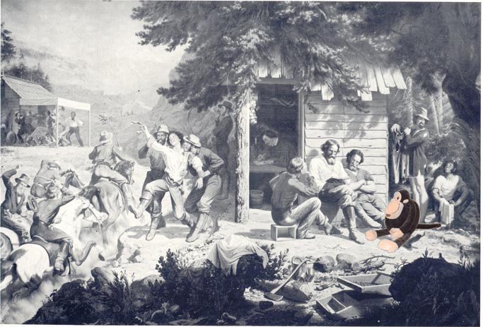 Wednesday, 5th Today is "Cinco de Mayo" which has an important Czecho-Californian Connection This is how Monkey explained it to me. You have to pay close attention because his logic is unique. Warning: once you get it, you're reasoning will be forever as hopelessly befuddled as his is. Napoleon III invaded Mexico intending to make it part of his empire. (What 19th Century Imperialist wouldn't?) He sent troops to capture Mexico City, but on the way the French army went thru Puebla where, on 5 May 1862, the Mexicans defeated them. Napoleon sent 28,000 more soldiers and eventually took both cities. He then sent his cousin, Archduke Maximilian of Austria, to rule Mexico for him. Well, the proxy rule failed when the Mexicans rebelled and made Max way dead (by firing squad) in 1867. The remaining French forces fled. Way to go, Mexico! Now then, here's the dots connecting Czechs to 5-May-Day. Max was the brother of the Hapsburg Emperor of Austria-Hungary, Franz Josef [Emp. Frank Joe]. The emperor's heir was Archduke Franz Ferdinand who lived in Konopište, Czech Republic. (Yes, that's is the archduke whose assassination triggered World War I. Talk about a drama queen!) Thereby, Cinco de Mayo celebrates the ousting of invaders whose family was responsible for the First World War which ended many a California minor's preferred Sunday morning activities as captured by Charles Christian Nahl in his 1872 painting, "Sunday Morning in the Mines." The original resides at the Crocker Art Museum and this interpretation on the side of a building in Sacramento. And that's why California Czech monkeys party on 5th of May. See how simple these associations are? Opice even convinced the minors to climb down and join him in the celebration.  |